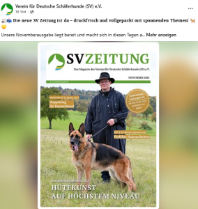 Neben dem Hundesport gehört das Fotografieren zu meinen großen Leidenschaften. Ein paar meiner Aufnahmen vom Bundesleistungshüten in Niefern-Öschelbronn haben es sogar ins Fachmagazin für Deutsche Schäferhunde geschafft – Novemberausgabe des SV-Hefts, inklusive Titelseite.