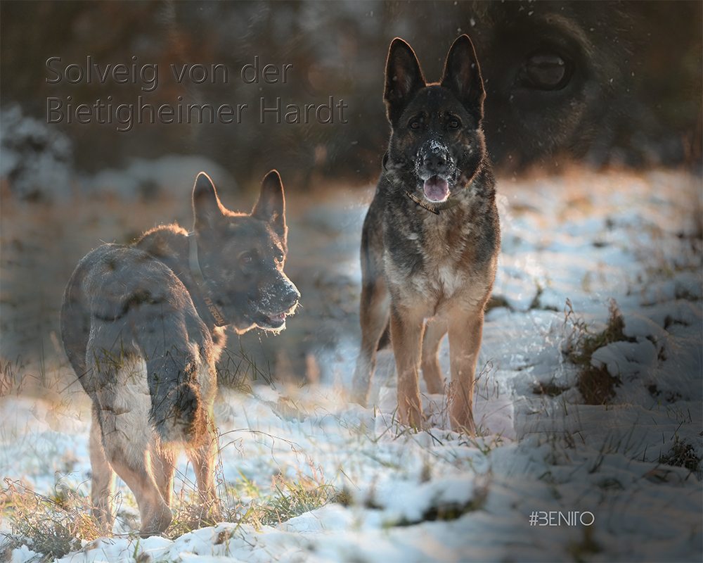 Solveig ist unsere Hündin aus dem „S“ Wurf nach Jimmy und Quickly. Sie ist eine lustige, aufmerksame und gelehrige Hündin. Wir haben jeden Tag so viel Freude an ihr. Gerne begleitet sie uns auf Wanderungen, spielt mit unseren Neffen oder genießt einfach viele Streicheleinheiten. Leo, unser jüngster Sohn bildet sie aus, die Beiden machen ihre Sache echt super und haben immer viel Spaß zusammen.